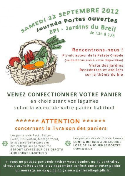 Samedi 21 septembre, de 11h à 17h, venez aux Jardins du Breil. Les portes vous seront grandes ouvertes! Au programme: Marché de...